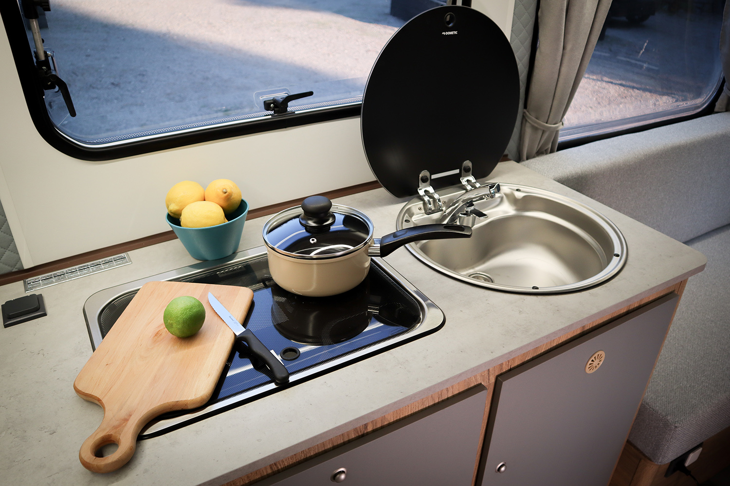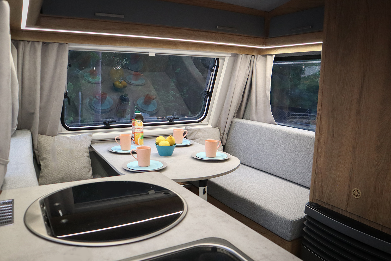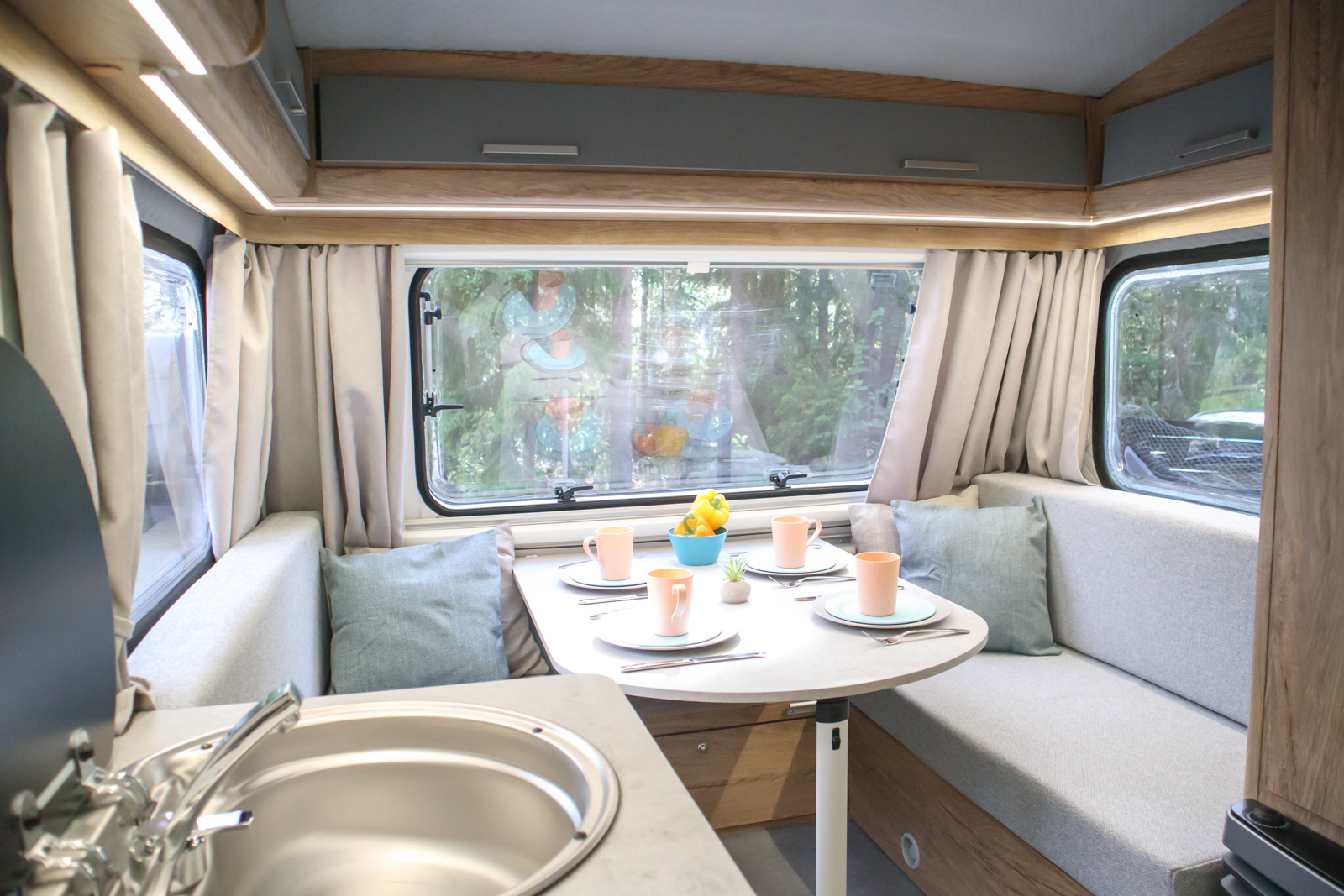 Poksilla voit retkeillä omavaraisesti kaasun ja 12v akun avulla tai vastaavasti voit käyttää pihasta tai leirintäalueelta saatavaa 220v sähköä. Poksi N on hyvä vaihtoehto vaikkapa pariskunnille, pienelle perheelle tai ensi kertaa vaunuileville.